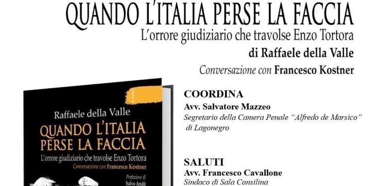Venerdì 22 marzo alle ore 15,30, presso l’Auditorium Comunale – Polo Culturale Cappuccini in Sala Consilina, verrà presentato il libro-intervista “Quando l’Italia perse la faccia – L’orrore giudiziario che travolse Enzo Tortora” scritto dall’avvocato Raffaele della Valle e dal giornalista Francesco Kostner. L’iniziativa, organizzata dalla Camera Penale “Alfredo de Marsico” di Lagonegro, vedrà la presenza oltre che degli autori anche del Presidente del Tribunale di Lagonegro, Silvio Maria Piccinno, del Procuratore della Repubblica del Tribunale di Lagonegro, Gianfranco Donadio, del sindaco del Comune di Sala Consilina, Francesco Cavallone, nonché degli avvocati Carmine Viglione e Vincenzo Bonafine, Presidenti rispettivamente della Camera Penale e dell’Ordine degli Avvocati di Lagonegro. L’incontro sarà coordinato dall’avvocato, Salvatore Mazzeo, Segretario della Camera Penale.