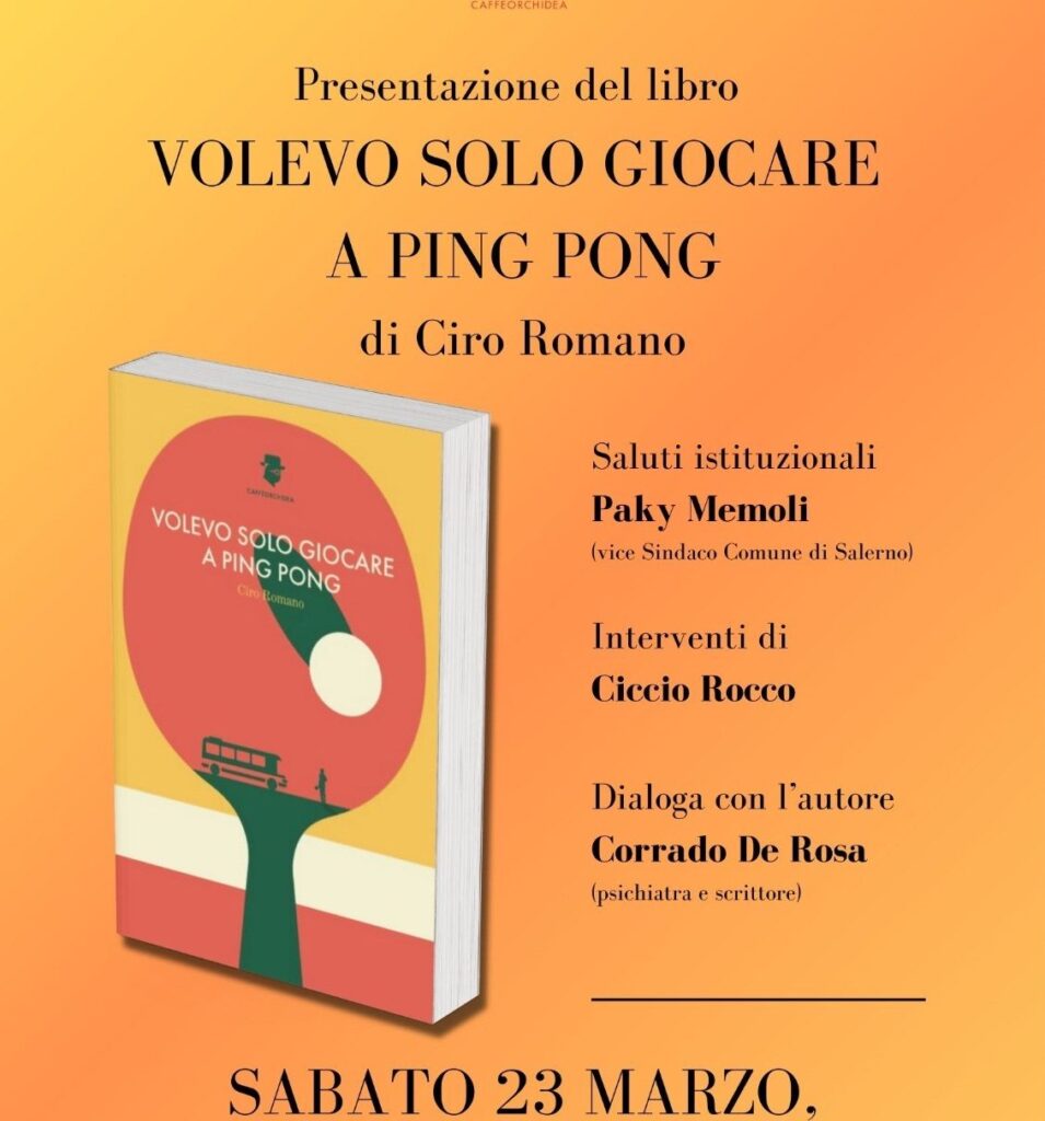 Giovanni Amendola – a Salerno, in anteprima nazionale il libro “Volevo solo giocare a ping pong” di Ciro Romano, edito da Caffèorchidea.