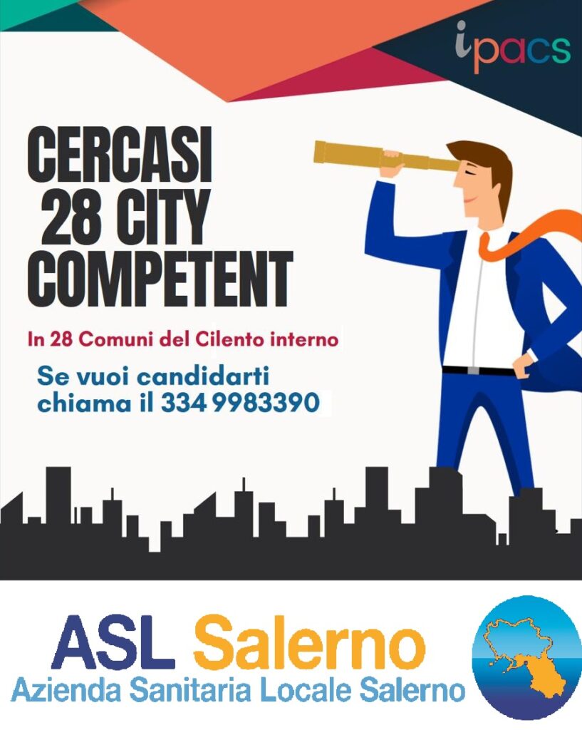 L’Asl Salerno ha aperto le iscrizioni per diventare “cittadino competente” in 28 comuni del Cilento interno. Può candidarsi chiunque sia interessato a dare un contributo sul territorio dei comuni ricadenti nei Distretti sanitari n. 69 Capaccio – Roccadaspide e n.70 Vallo della Lucania – Agropoli. Nello specifico, i comuni interessati sono: Aquara, Bellosguardo, Campora, Cannalonga, Castelcivita, Castelnuovo Cilento, Castel San Lorenzo, Ceraso, Controne, Corleto Monforte, Felitto, Gioi, Laurino, Magliano Vetere, Moio della Civitella, Monteforte Cilento, Novi Velia, Orria, Ottati, Perito, Piaggine, Roccadaspide, Roscigno, Sacco, Salento, Sant’Angelo a Fasanella, Stio e Valle dell’Angelo.
