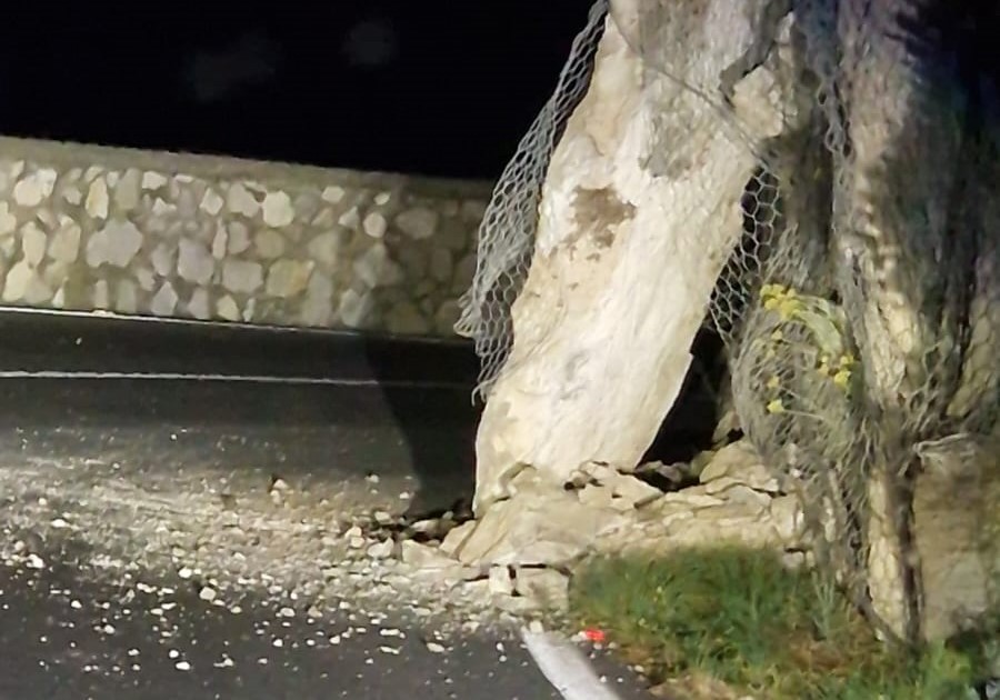Era l’imbrunire quando alcuni pezzi di parete rocciosa, sono crollati al suolo occupando l’intera cunetta, fortunatamente senza invadere la carreggiata, lungo la quale si sono riversati soltanto detriti.