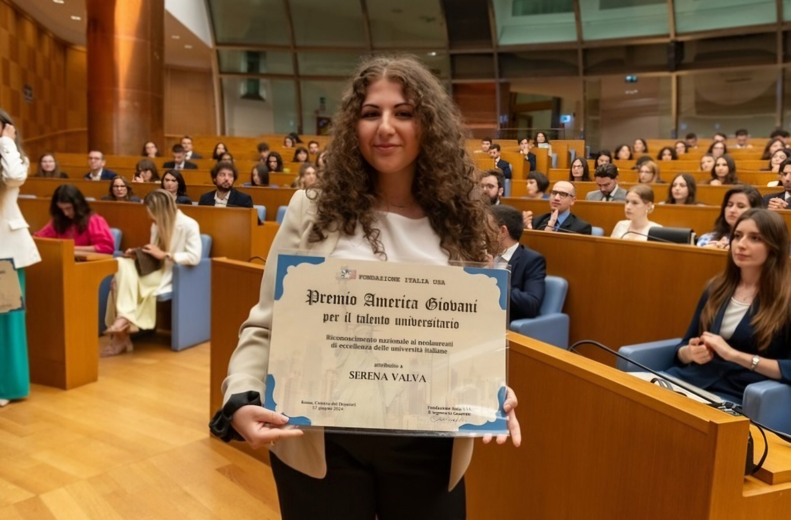 Fra le mille eccellenze accademiche per la Fondazione Italia USA anche la casalbuonese Serena Valva che è stata premiata lo scorso 17 giugno alla Camera dei Deputati. Il Premio America Giovani, questo il nome assegnato al ricoscimento, promuove il talento universitario ogni anno, scegliendo attraverso determinati criteri- fra i quali un brillante curriculum studiorum e altre valutazioni comparative- 1000 fra neolaureate e neolaureati in tutta Italia, che si sono distinti nel loro percorso di studi in materie di interesse per la Fondazione Italia USA.
