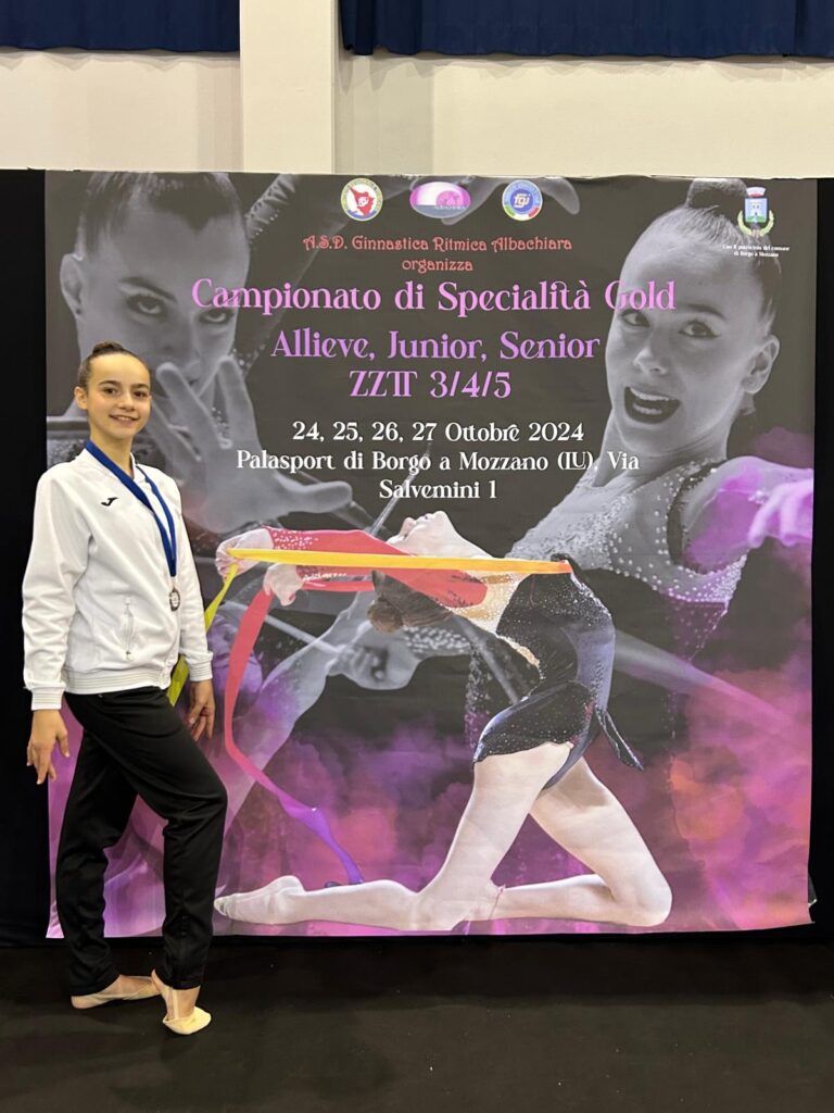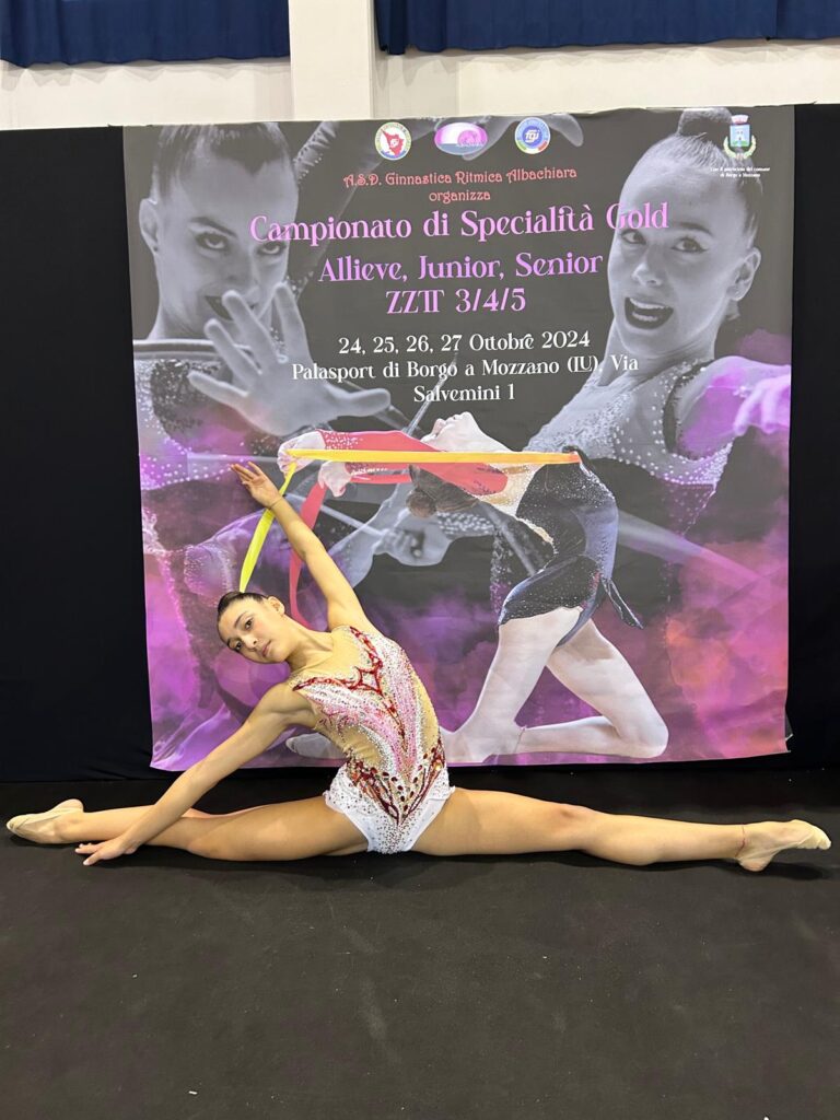 Lo scorso fine settimana, il Palazzetto di Borgo a Mozzano ha ospitato la ZT5, la fase interregionale Sud Italia del Campionato Individuale di Specialità Gold di ginnastica ritmica. È stata un’occasione ricca di emozioni per le giovani ginnaste provenienti da diverse regioni, e tra loro si è distinta Sara Trotta, che ha conquistato il titolo di Vice Campionessa nella categoria J1.