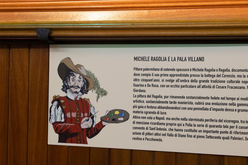 Il fumetto “Una tela per il Marchese” ripercorre la vita di Ser Giovanni Villano, marchese di Polla nei primi decenni del XVII secolo, e della sua famiglia. La storia, che include la controversa vicenda della refuta di tutti i beni del marchese in favore del fratello minore, Francesco Antonio, è stata già al centro di una precedente rappresentazione teatrale che ha avuto luogo presso il Santuario di S. Antonio di Padova. Il fumetto si inserisce così in una narrazione che mescola storia, arte e tradizione, presentando i luoghi più iconici di Polla, ma anche quelli legati alla famiglia Villano, come la Chiesa del Rosario e il Castello di Polla.