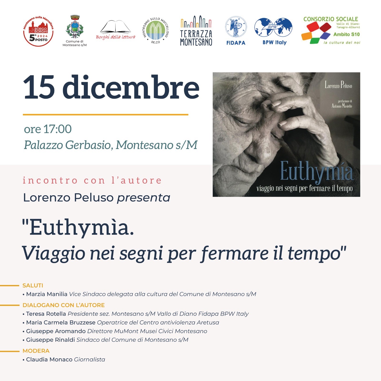 La comunità di Montesano sulla Marcellana incontrerà domenica alle ore 17:00 presso il palazzo Gerbasio il giornalista Lorenzo Peluso per un confronto a più voci su “Euthymía. Viaggio nei segni per fermare il tempo”. Un libro fotografico che racconta la storia di 44 donne anziane nate durante il fascismo e cresciute durante la Guerra. Vengono raccontate le storie di donne e delle loro esistenze, narrate attraverso le emozioni che emergono dai loro volti ritratti, in bianco e nero. Un libro che descrive i segni del tempo delle vite vissute capaci di mettere in risalto l’essenza dell’essere umano. La ricerca della tranquillità dell’animo. “Euthymía. Viaggio nei segni per fermare il tempo”, con la prefazione di Antonio Masiello, fotogiornalista di Getty Images, è un lavoro che nasce dall’idea di raccontare “quel patrimonio straordinario di memoria” che le persone anziane rappresentano in una comunità. Nel libro sono racchiuse 44 fotografie, 44 volti di altrettante donne che vivono in un piccolo borgo del salernitano, a Sanza. Dalla ottantenne alla 97enne. Madri, mogli; nonne.