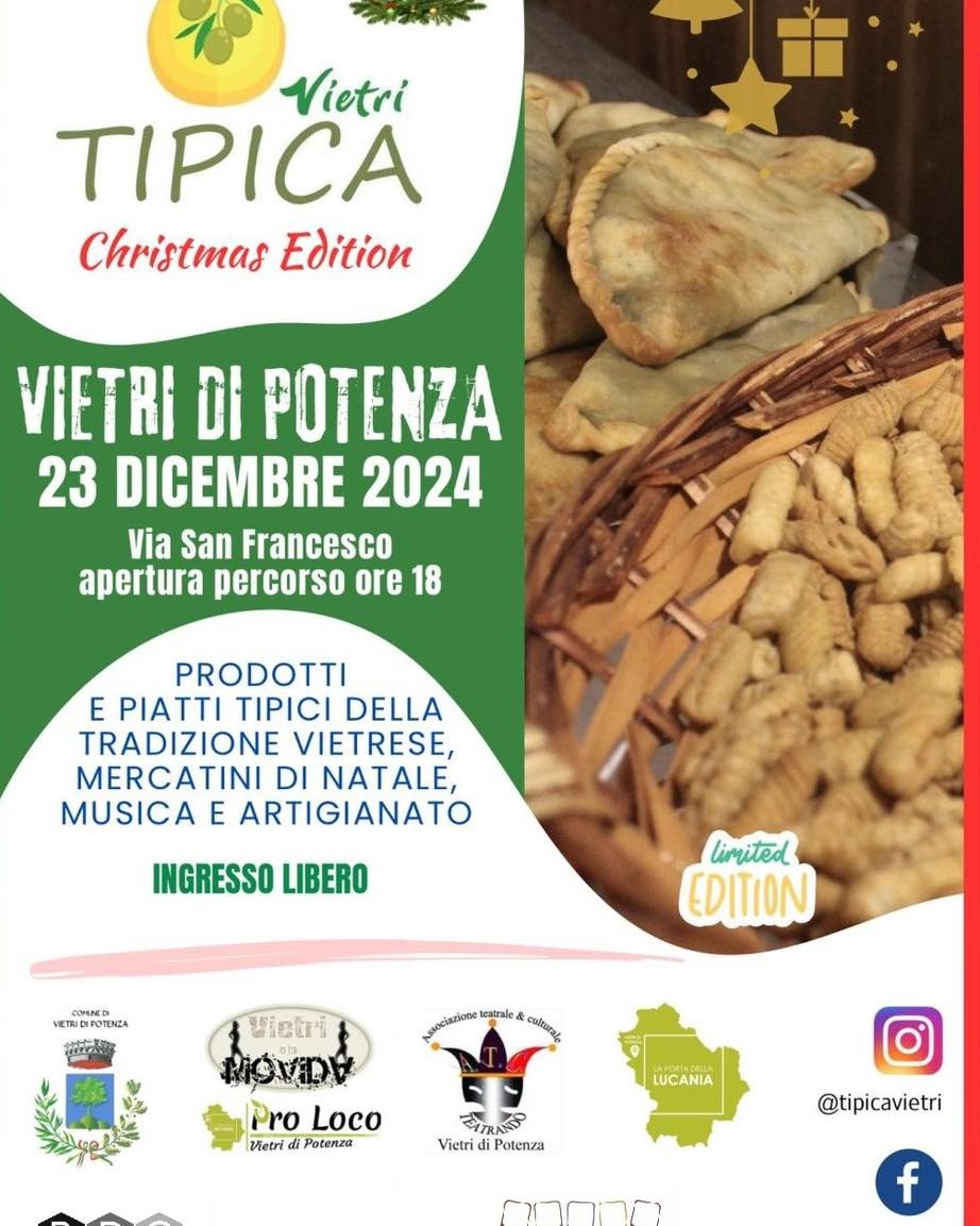 La comunità di Vietri di Potenza è pronta ad accogliere la seconda edizione di “Tipica Christmas Edition”, la versione natalizia di uno dei percorsi gastronomici più partecipati e apprezzati dell’estate lucana. A differenza dell’edizione estiva, quella natalizia si caratterizza, oltre che per il tema natalizio, per la location, il format e un percorso più concentrato, ma comunque ricco di prodotti tipici, stand, attrattive, mercatini. Dopo il grande successo dello scorso anno, anche per questa edizione la data è la stessa: il 23 dicembre, lunedì prossimo.