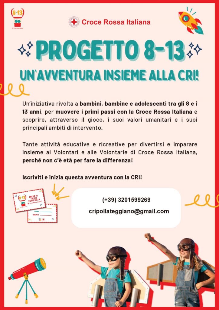“Progetto 8-13: Non c’è età per fare la differenza” è l’entusiasmante iniziativa promossa dalla Croce Rossa Italiana. Un’iniziativa dedicata a bambini, bambine e adolescenti tra gli 8 e i 13 anni per avvicinarsi al mondo del volontariato, far conoscere “il grande mondo della Croce Rossa Italiana e soprattutto imparare tante cose nuove attraverso il gioco”.