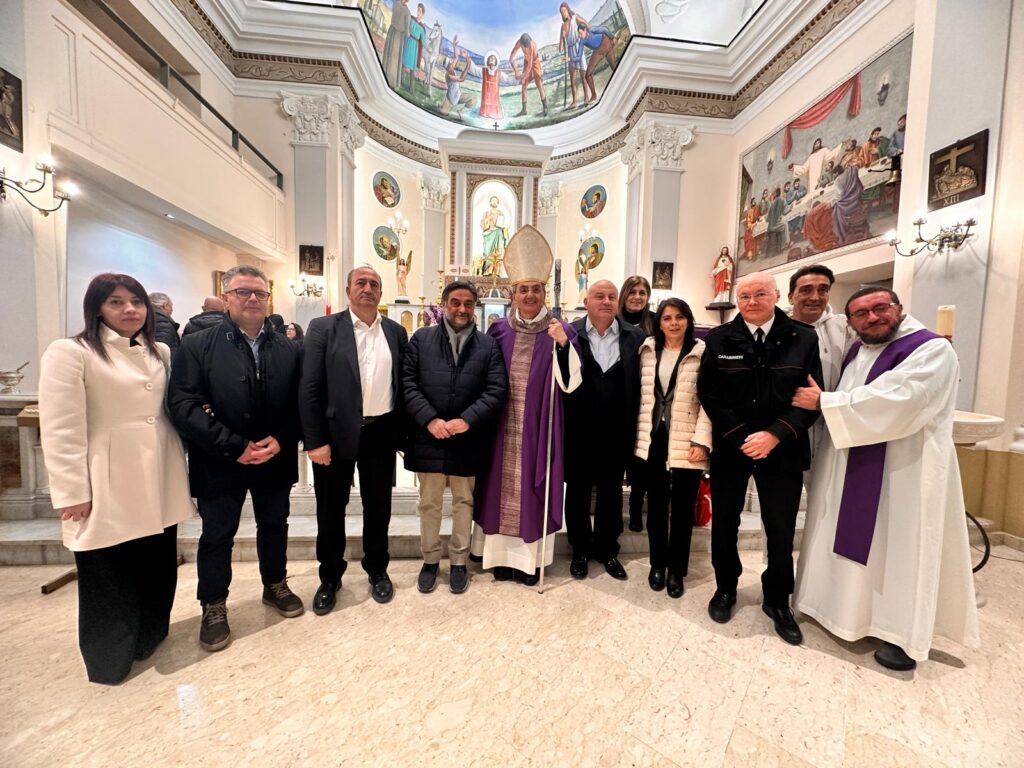 Alla cerimonia, che si è tenuta nel corso della celebrazione della Santa Messa officiata dal parroco, don Angelo Pellegrino, e dal Vescovo della Diocesi di Teggiano Policastro, Padre Antonio De Luca, era presente l’Amministrazione Comunale di Teggiano guidata dal sindaco Michele di Candia, con assessori e consiglieri comunali.