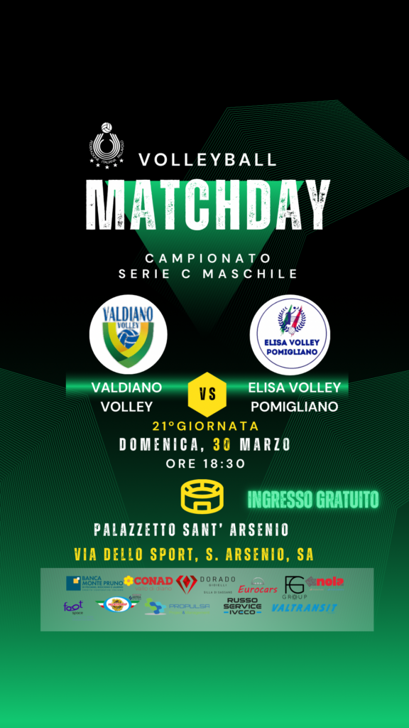 Partita da non perdere, domenica ore 18:30 al Palazzetto di Sant’Arsenio va in scena la Valdiano Volley.