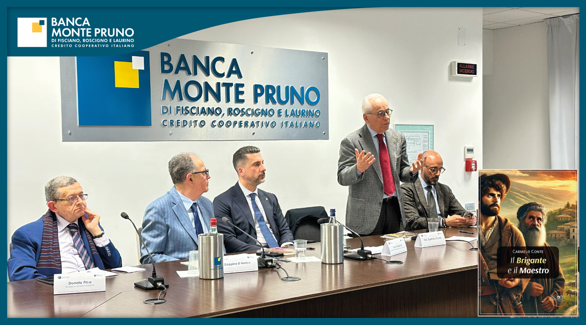 “Il Brigante e il Maestro” è il titolo dell’ultimo libro scritto di Carmelo Conte e presentato venerdì pomeriggio, con una vera e propria lectio magistralis dell’autore, presso la Sala Cultura della BCC Monte Pruno a Sant’Arsenio.
