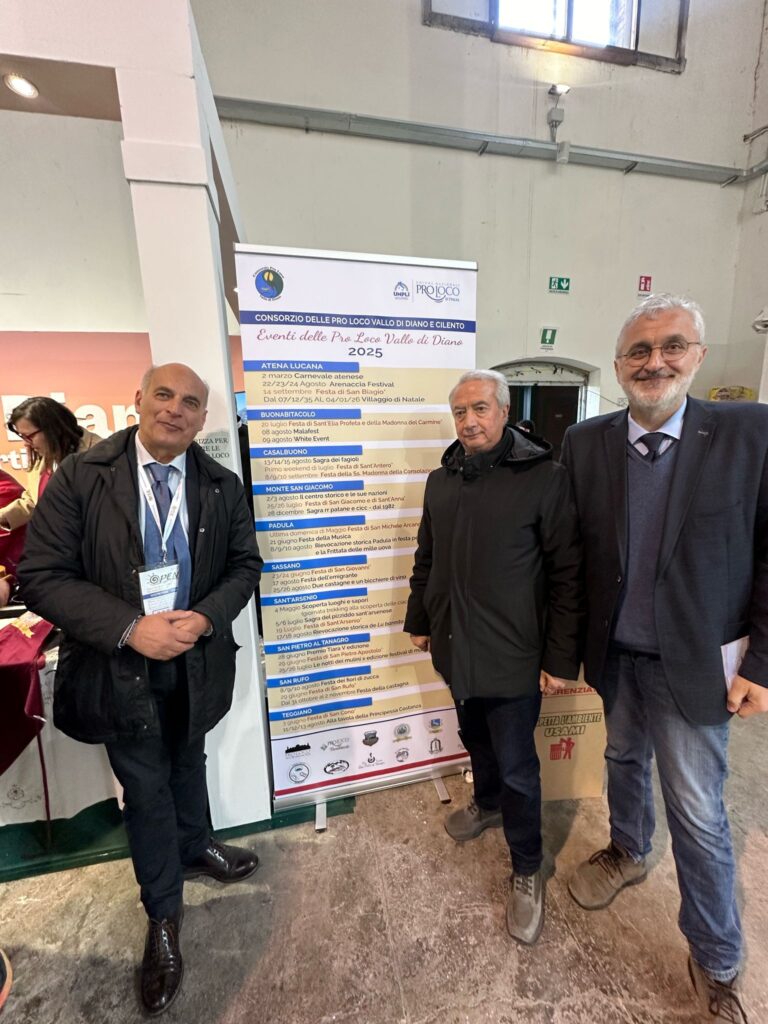 Molto apprezzato anche lo stand del Consorzio Pro Loco Vallo di Diano, con il presidente Walter Nicodemo e diverse Pro Loco locali, che hanno raccontato la nostra terra attraverso sapori, immagini e un totem informativo sulle iniziative in programma nei vari comuni.