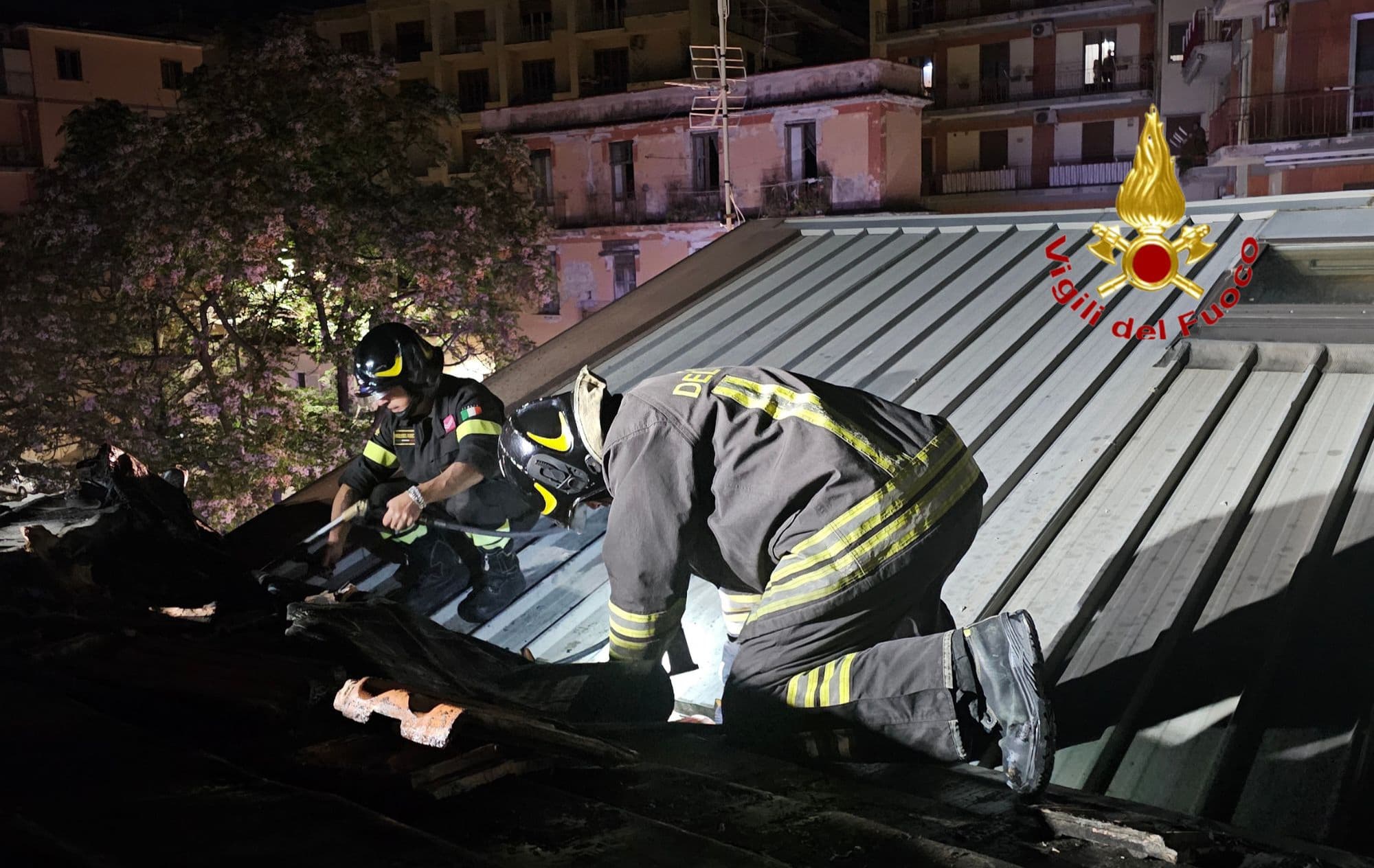 I caschi rossi sono intervenuti rapidamente con l’ausilio di un’autoscala, accedendo al locale situato al secondo piano, mentre un’altra squadra operava dall’alto. L’incendio, che aveva interessato la copertura in legno e la guaina impermeabilizzante è stato domato in breve tempo.