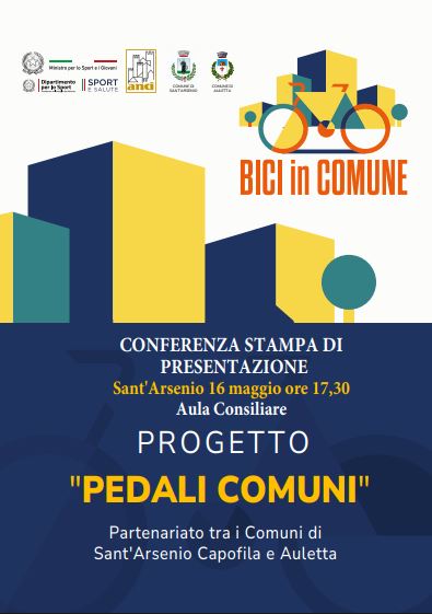 I Comuni di Sant’Arsenio e Auletta presenteranno alla stampa e alla cittadinanza il progetto congiunto “Bici in Comune”, promosso dal Ministro per lo Sport e i Giovani, con il supporto del Dipartimento per lo Sport. L’appuntamento è fissato per venerdì 16 maggio alle ore 17:30, presso l’aula consiliare del Comune di Sant’Arsenio.