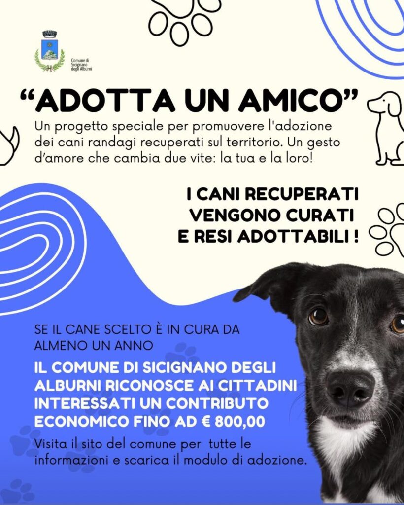 Il secondo è il progetto “Adotta un amico”, un progetto speciale per promuovere l’adozione dei cani randagi recuperati sul territorio. L’iniziativa prevede l’erogazione di un contributo economico di 800 euro ai cittadini interessati ad adottare un cane custodito da almeno un anno nel canile convenzionato. Anche in questo caso, i moduli per l’adozione sono scaricabili dal sito del comune. Per conoscere i cani ricoverati nel canile basta consultare le schede pubblicate sulla pagina Facebook ufficiale, oppure è possibile visitarli direttamente presso il canile “Oasi Felix” sito a Polla, aperto al pubblico dal lunedì al venerdì dalle 11:30 alle 16:30.