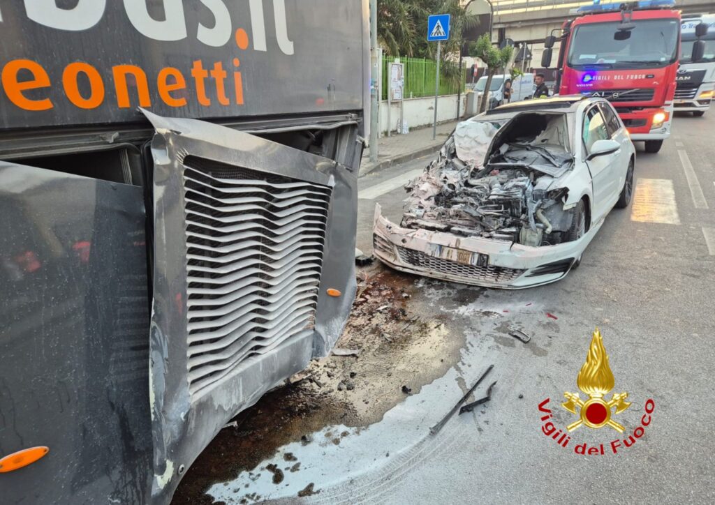 Ancora un incidente stradale si registra nel salernitano. A Scafati, in via Alessandro Manzoni, una Volkswagen Golf si è schiantata contro un bus probabilmente parcheggiato. Sul posto i sanitari del 118 che hanno provveduto a prestare le prime cure alle persone coinvolte nel sinistro. Sono intervenuti anche i Vigili del Fuoco poiché la vettura era incastrata sotto il lato posteriore. All’arrivo sul posto i caschi rossi hanno estinto il principio d’incendio dell’automobile evitando ulteriori danni. La dinamica del sinistro e al vaglio delle forze dell’ordine intervenute sul posto.