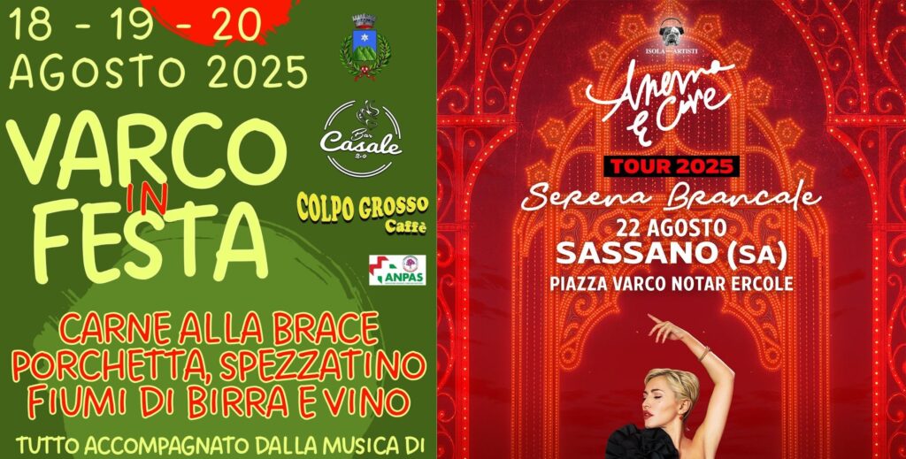 C’è grande attesa per l’estate a Sassano, che promette di essere ricca di eventi indimenticabili. La frazione di Varco Notar Ercole ospiterà dal 18 al 22 agosto due manifestazioni che si preannunciano come i protagonisti assoluti della stagione estiva, pronte a conquistare il cuore di residenti e visitatori. Il Comitato Feste del Cuore Immacolato di Maria, con il suo instancabile impegno e passione, ha preparato un programma che unisce gastronomia, cultura e musica, creando un’atmosfera di festa che saprà coinvolgere tutti.