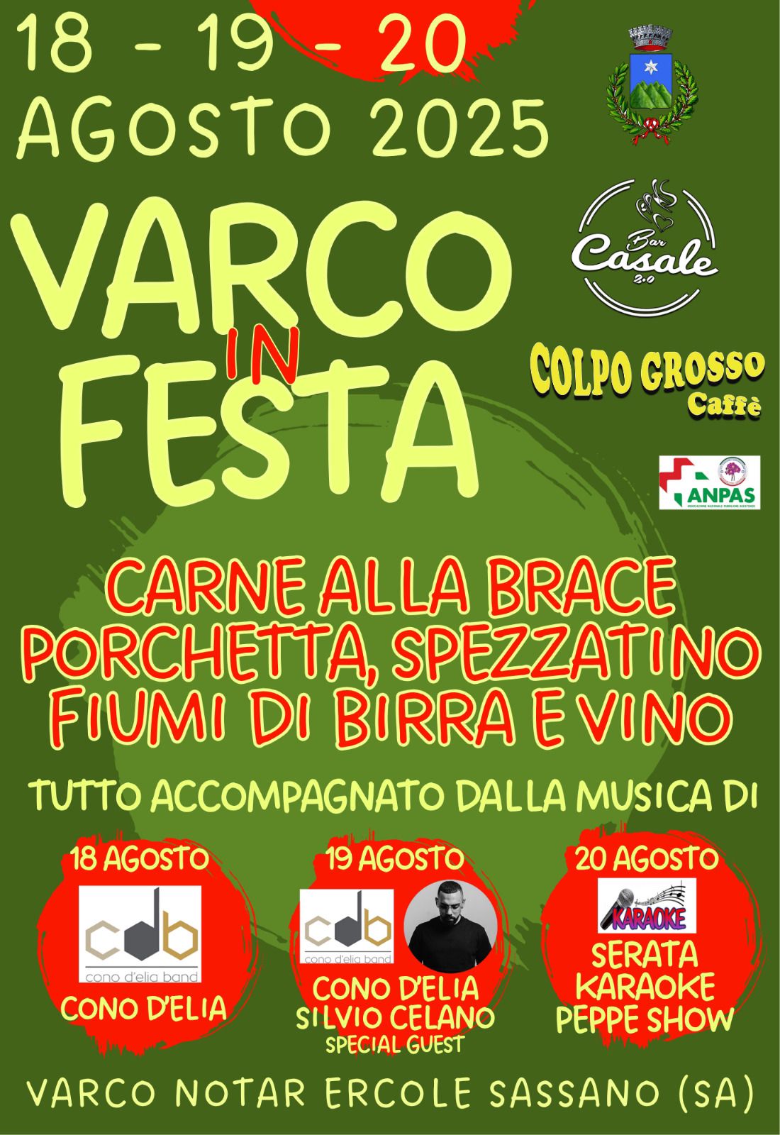 I protagonisti di queste tre serate saranno i sapori tipici della gastronomia sassanese, con piatti come carne alla brace, porchetta e spezzatino, accompagnati da birra e vino in abbondanza, per un’esperienza che unisce gusto e convivialità. La serata di apertura, il 18 agosto, vedrà la partecipazione della Cono D’Elia Band, che porterà sul palco la sua energia e il suo sound coinvolgente, dando il via a una festa che promette di durare fino a notte fonda. Il 19 agosto, Cono D’Elia sarà affiancato da Silvio Celano, creando un mix unico di musica dal vivo, contaminando sonorità e creando atmosfere suggestive. Infine, il 20 agosto, il gran finale con il “Peppe Show”: una serata karaoke in cui tutti potranno mettersi alla prova sul palco, tra risate e applausi.