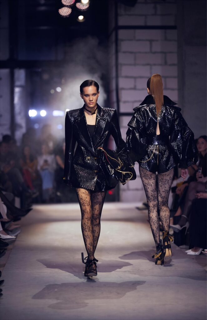 La collezione trae ispirazione dalla corte del Re Sole, omaggiando figure femminili potenti e controverse come Madame de Montespan e Catherine La Voisin. Una donna pericolosa perché libera, che usa corpo e mente come strumenti di dominio. «Con Black Versailles ho voluto raccontare un’eleganza che nasce dall’ombra, un lusso che non ha bisogno di gridare», ha dichiarato Antonio Martino al termine dello show.