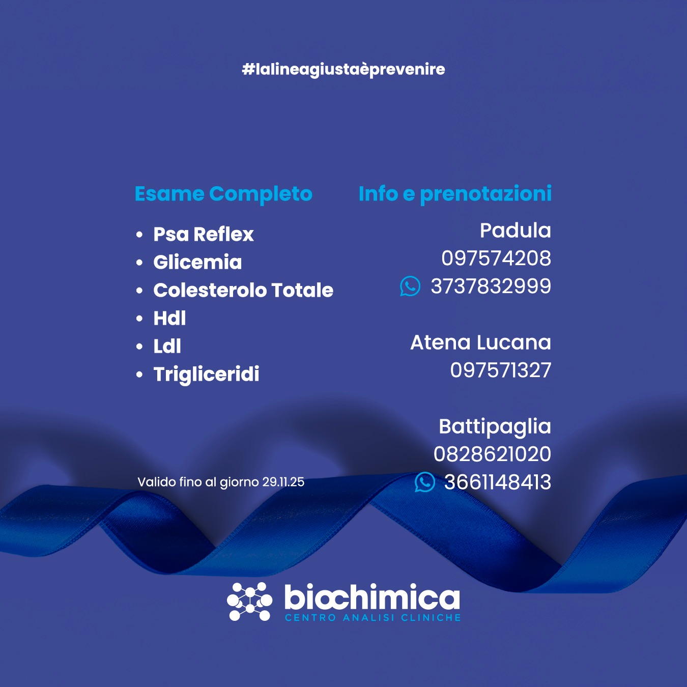 Con lo slogan #lalineagiustaèprevenire, Biochimica propone una serie di analisi pensate per monitorare i principali indicatori di salute maschile al costo promozionale di 25 euro, valido fino al 29 novembre 2025.