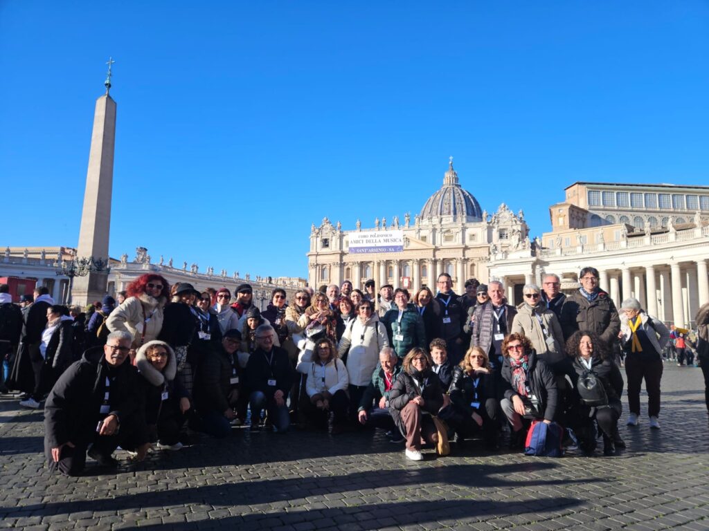 È stato un week-end di intensa spiritualità e armonia quello che sta per finire, in Piazza San Pietro a Roma, dove si è celebrato il Giubileo dei Cori e delle Corali, un evento giubilare straordinario che ha riunito circa 35.000 coristi provenienti da 117 Paesi. Tra di loro, anche una significativa delegazione dal Vallo di Diano, con il Coro Polifonico “Amici della Musica” di Sant’Arsenio e il Coro “Jubilate” di Monte San Giacomo, oltre a rappresentanti di diversi cori del comprensorio valdianese.