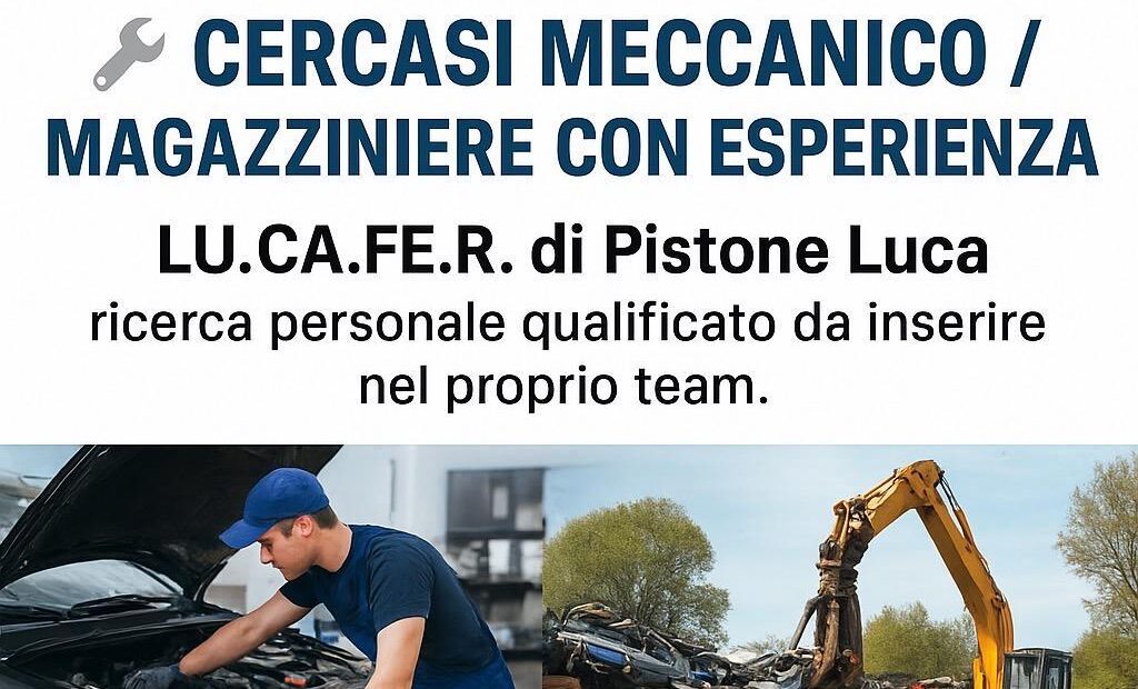 Le figure ricercate sono due: un meccanico con esperienza nel settore, capace di intervenire su veicoli e mezzi meccanici, e un magazziniere con competenze specifiche nella gestione di ricambi e materiali, preferibilmente già formato in contesti industriali strutturati.