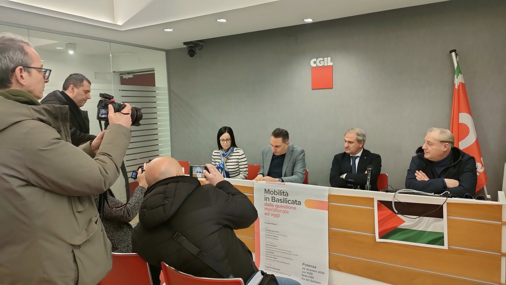Potrebbe essere un'immagine raffigurante una o più persone, redazione e il seguente testo "CGIL ப AIA Mobilità in Basilicata dalla questione meridionale ad oggi"