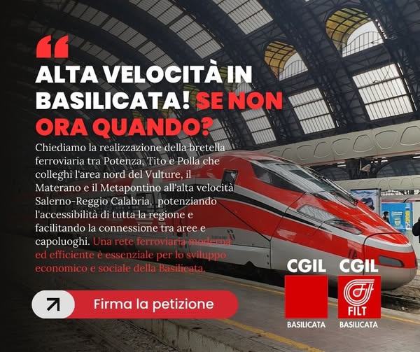 In particolare, la Filt Cgil chiede investimenti concreti per completare la Bretella Polla, collegare adeguatamente l’Alta Velocità e potenziare le principali arterie lucane, superando logiche frammentarie e ritardi burocratici. “Non è più il tempo degli studi di fattibilità – hanno ribadito Mega e Ditella – occorrono scelte coraggiose per una Basilicata finalmente connessa e competitiva”.