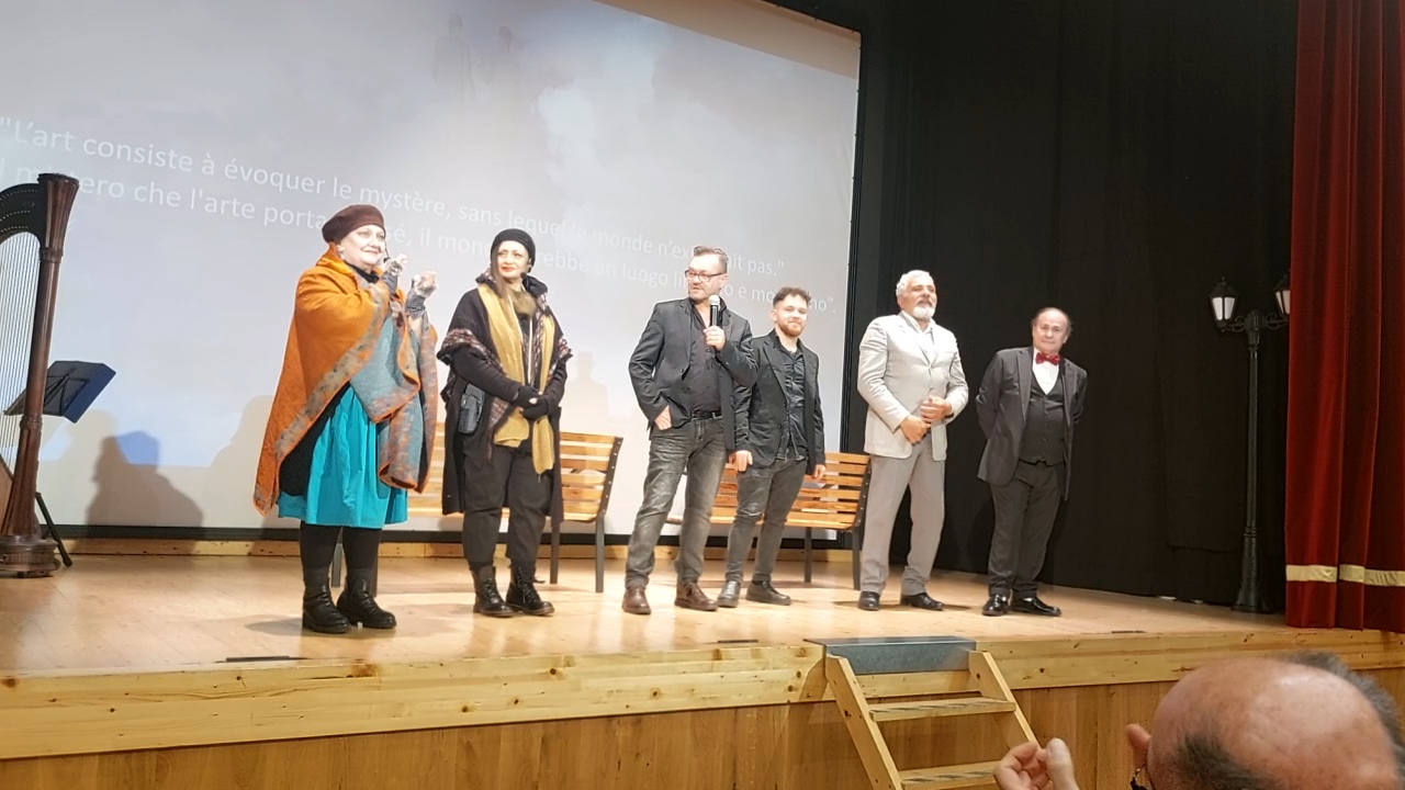 È stato un successo anche per la replica finale di Frammenti di parole sotto un angolo di cielo andata in scena all’Auditorium comunale Massimo Troisi di Casalbuono lo scorso sabato. La pièce teatrale in due atti è stata curata dalle maestranze del Laboratorio d’Arti Sceniche Kaos che ha portato sul palco due drammi dal grande coinvolgimento emotivo, per il primo atto è stata la volta de L’uomo dal fiore in bocca di Luigi Pirandello”: grande dramma teatrale che a più di cento anni dalla prima messa in scena risulta ancora attuale con le tematiche dell’incomunicabilità, della caducità della vita, della malattia, della morte; mentre per il secondo atto è stata la volta di Salva con nome, un testo scritto da Salvatore Ungaro -presidente del Laboratorio d’Arti Sceniche Kaos e direttore artistico delle rassegne teatrali per l’Auditorium Massimo Troisi- con protagoniste due donne “che vivono la strada e in comune hanno lo stesso dramma speculare, il lutto dei figli mai elaborato ed accettato, dove l’una potrebbe essere la proiezione dell’altra” come ci racconta lo stesso Ungaro. Ad interpretare con grande pathos i ruoli di questi personaggi che si incontrano per rivelare delle verità mai accettate in maniera definitiva sono stati Cono Cimino e Giuseppe Viola ne L’Uomo dal fiore in bocca e Orsola Santoro e Mariacarmela Bruzzese in Salva con Nome. Le musiche che hanno accompagnato gli spettatori nei dialoghi apparentemente semplici e quotidiani sono state composte e adattate dal maestro d’arpa Giuseppe Romano.