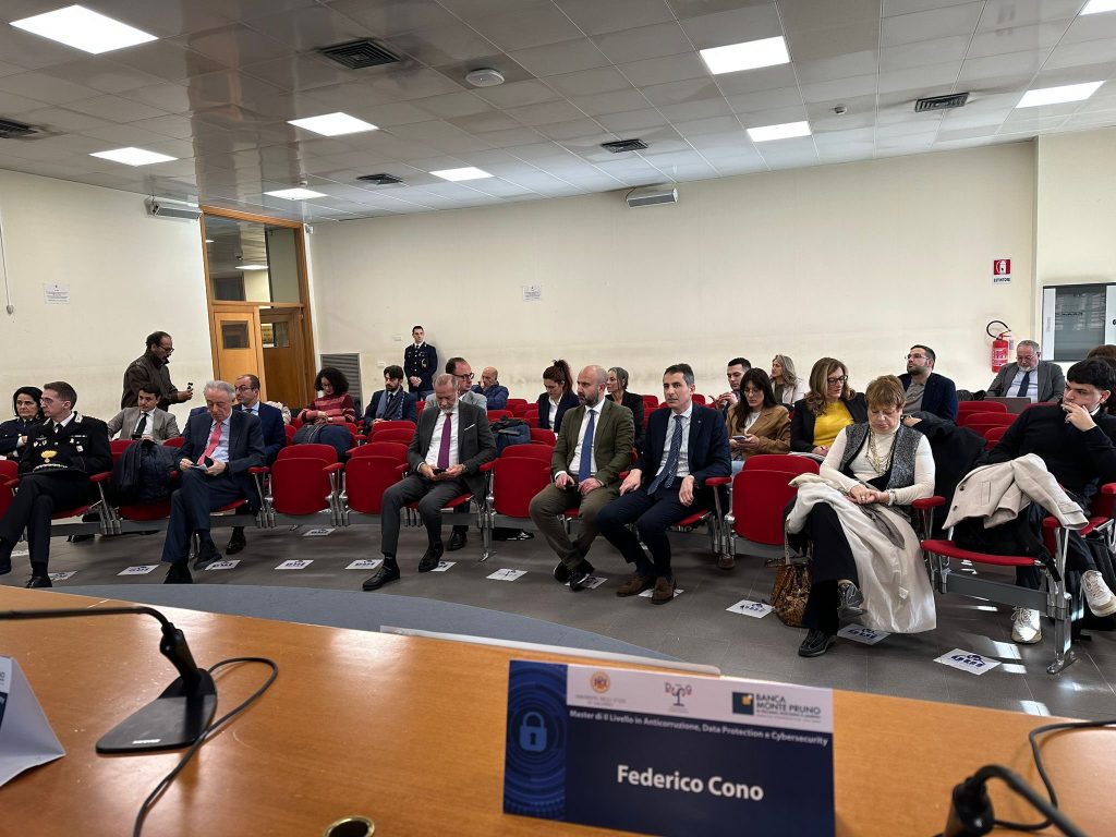 Nel corso dell’iniziativa ha portato il proprio saluto istituzionale anche il Direttore Generale della Banca Monte Pruno, Cono Federico, che ha sottolineato il valore strategico della collaborazione tra il mondo accademico e il sistema del credito. Nel suo intervento, il Direttore Generale ha evidenziato l’importanza di investire nella formazione altamente qualificata, soprattutto sui temi della legalità, della trasparenza e della sicurezza dei dati, elementi oggi imprescindibili per lo sviluppo sostenibile delle istituzioni e delle imprese.
