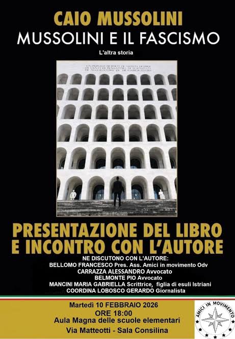 “Sottolineo quanto sia beffardo il destino, dove la scuola che sorge su una via dedicata a Giacomo Matteotti, ucciso vigliaccamente dai fascisti, apre le porte al pronipote dell’assassino politico. La democrazia si difende e si insegna con atti di coraggio e bellezza”. Questo è solo uno dei tanti post scritti da cittadini di Sala Consilina e dell’intero Vallo di Diano per esprimere il proprio dissenso alla presentazione del libro del pronipote di Mussolini, “Mussolini e il fascismo”, prevista per martedì 10 febbraio.