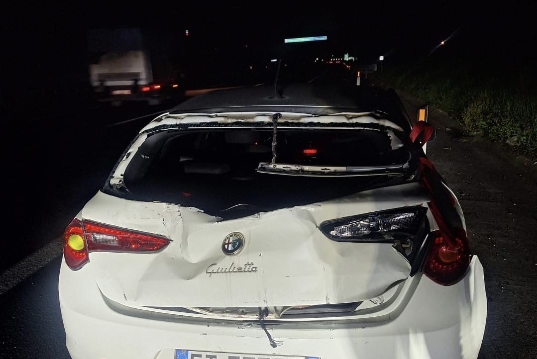 Si tratta di un’Alfa Romeo Giulietta bianca evidentemente danneggiata nella parte posteriore che i ladri hanno utilizzato per sfondare la vetrata dell0Atm. Le targhe – secondo quanto emerso dalle indagini dei carabinieri – risultano essere state rubate. Dopo aver usato quest’auto anche come traino per trascinare il bancomat, i malviventi sono scappati a bordo di un’Audi A3 di colore grigio.
