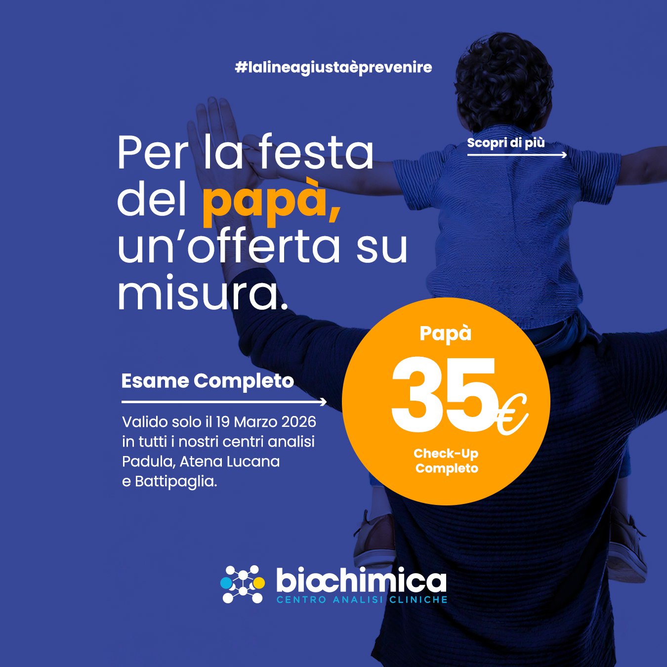 L’iniziativa rappresenta un’occasione concreta per prendersi cura della propria salute o per fare un regalo utile e significativo in occasione della Festa del Papà. Per chi la desidera, infatti, è disponibile anche la Gift Card Biochimica.