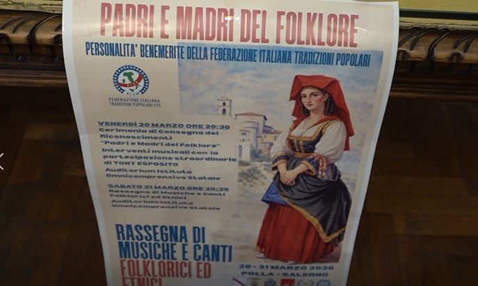 Il 20 e 21 marzo 2026 il Comune di Polla, nel Vallo di Diano, ospiterà la Rassegna della musica etnica e dei canti popolari, due giornate dedicate a tradizioni, musica e folklore italiano e internazionale. L’evento è promosso dalla Federazione Italiana Tradizioni Popolari con il supporto del Comune di Polla, della Provincia di Salerno e della Regione Campania, insieme a IGF, IOV e Fondazione MIDA. L’obiettivo è valorizzare il patrimonio culturale immateriale del territorio attraverso spettacoli di musica, danza e costumi tradizionali. Ospite d’eccezione della serata inaugurale del 20 marzo sarà il percussionista Tony Esposito, protagonista della world music italiana. L’apertura ufficiale è prevista alle 20.30 nell’auditorium dell’Istituto Omnicomprensivo Statale.