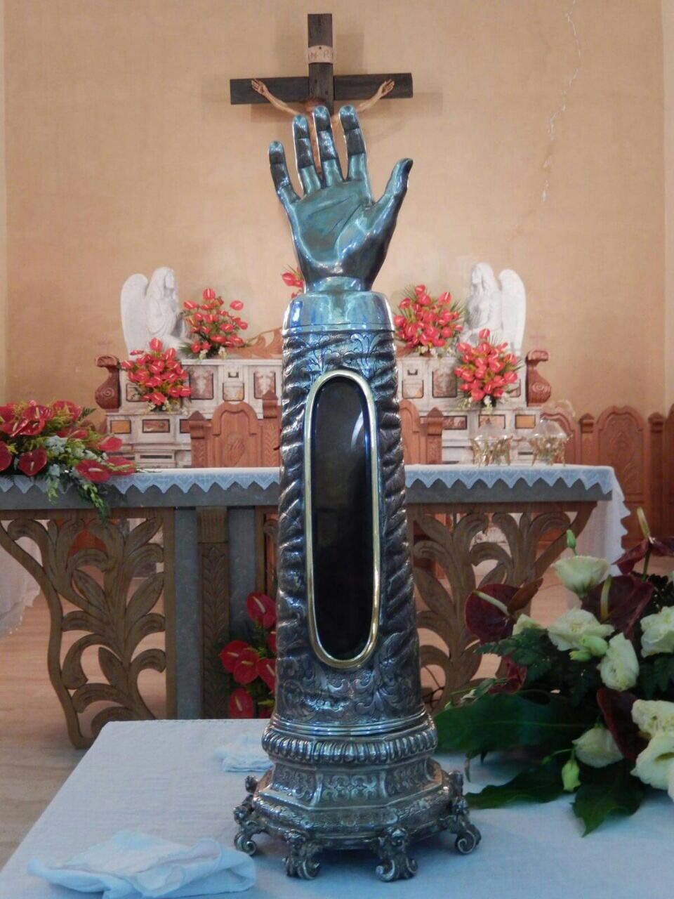 L’operazione è avvenuta alla presenza delle autorità ecclesiastiche competenti, con regolare verbale e apposizione dei sigilli arcivescovili. Contestualmente è stato prelevato anche il medaglione in metallo dorato presente sulla statua del Santo, al fine di collocarvi una nuova reliquia, secondo le disposizioni ecclesiastiche.