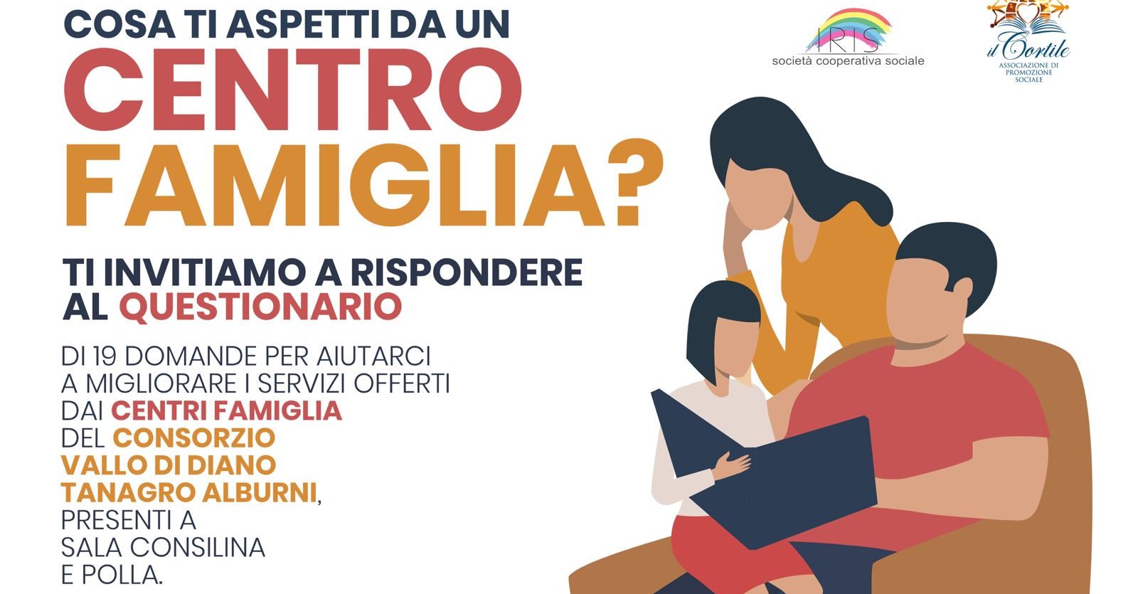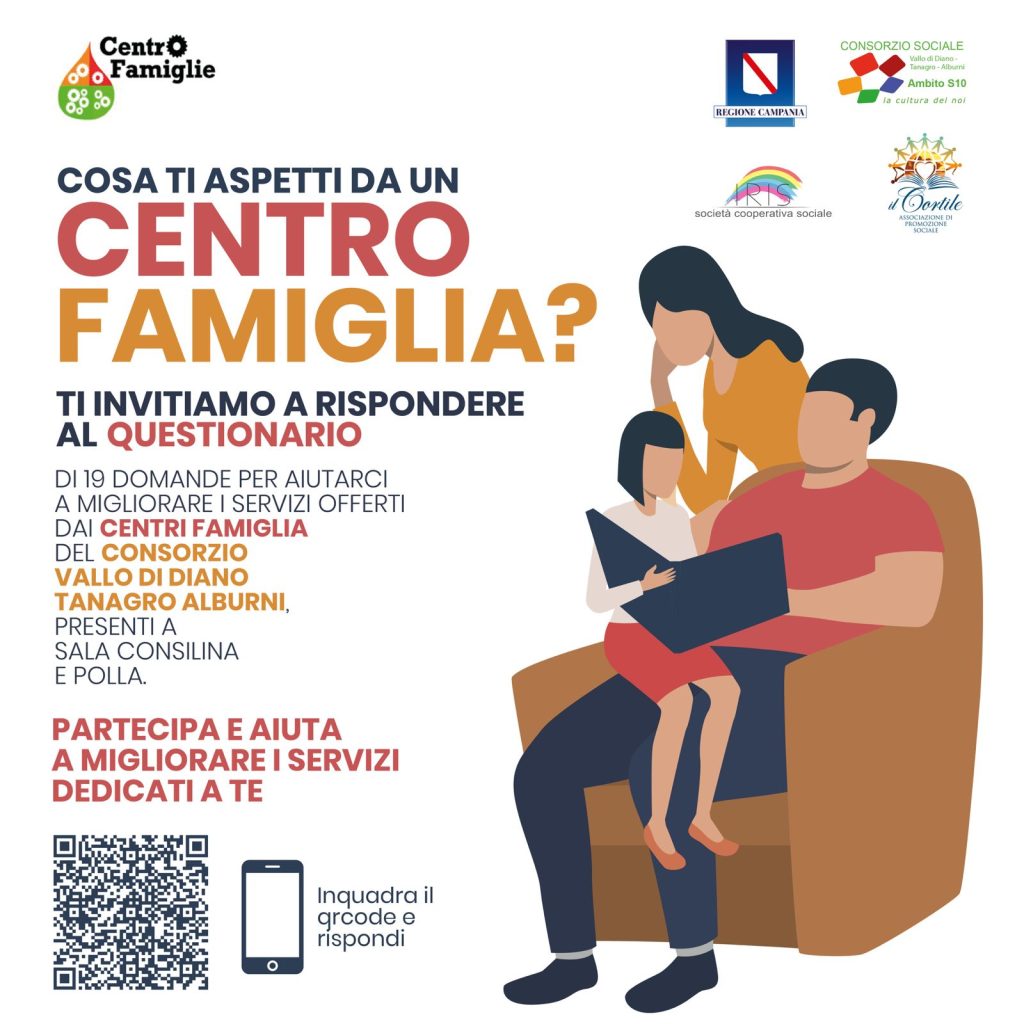Parte una nuova campagna di sensibilizzazione promossa dal Consorzio Sociale Vallo di Diano Tanagro Alburni con l’obiettivo di coinvolgere direttamente le famiglie del territorio nella definizione e nel miglioramento dei servizi sociali. L’iniziativa si inserisce nelle attività del Centro Famiglia, servizio gratuito rivolto al sostegno delle famiglie sotto il profilo educativo, sociale, relazionale ed emotivo, realizzato in collaborazione con la Cooperativa Sociale Iris e l’Associazione Il Cortile APS.