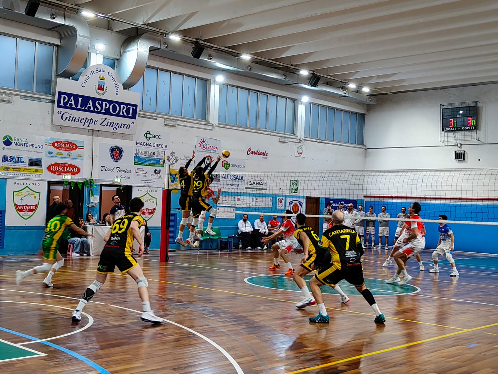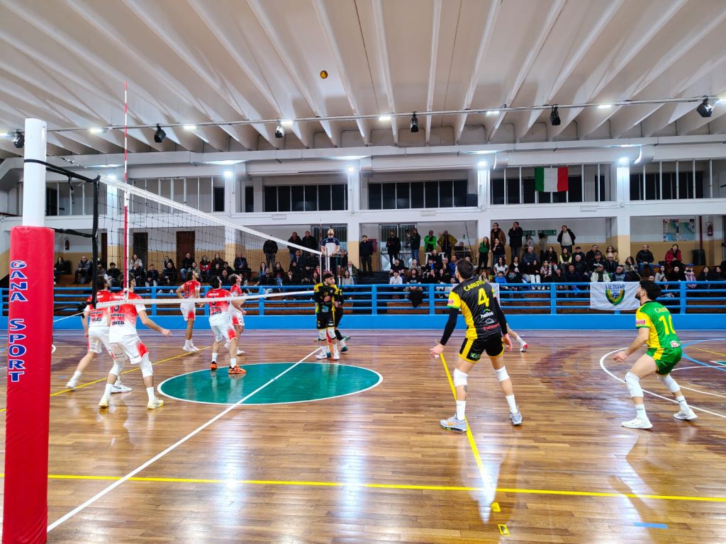 Il pubblico ha assistito a una partita intensa e di alto livello, che ha visto le due compagini gareggiare in un match che avrebbe potuto ridisegnare i primi posti in classifica e riaprire la lotta per i playoff. Nel primo set i ragazzi di coach Monopoli, con Cantarella in regia, Bongiorno opposto, Canuto e Mentasti laterali, Rizzo e Marcoionni al centro e Calitri libero, hanno mantenuto un buon ritmo di gioco conquistando diversi punti e non allontanandosi troppo dagli avversari. Nonostante le buone prestazioni, i gialloverdi si sono fermati a 21 punti.