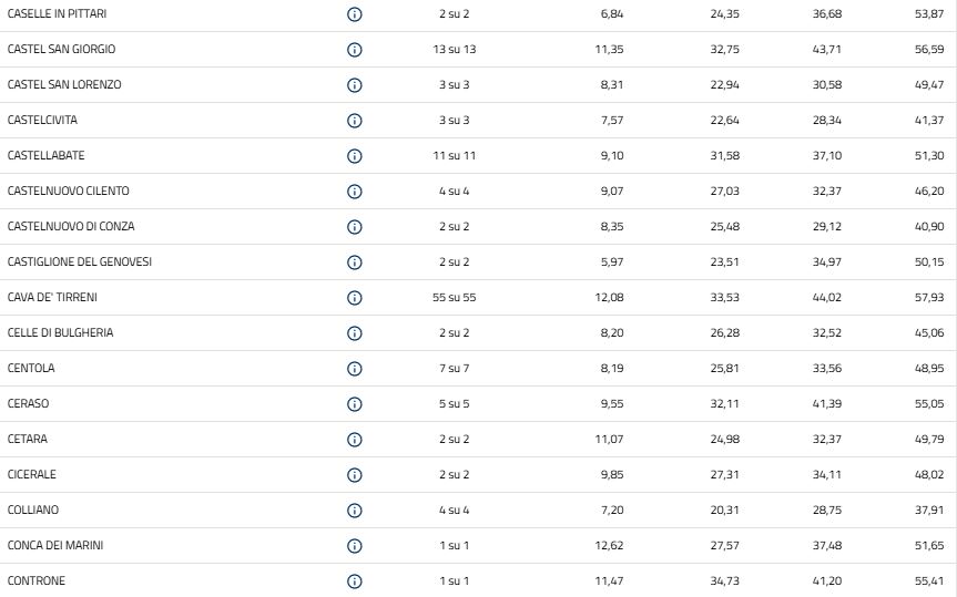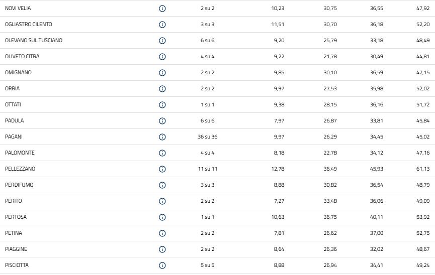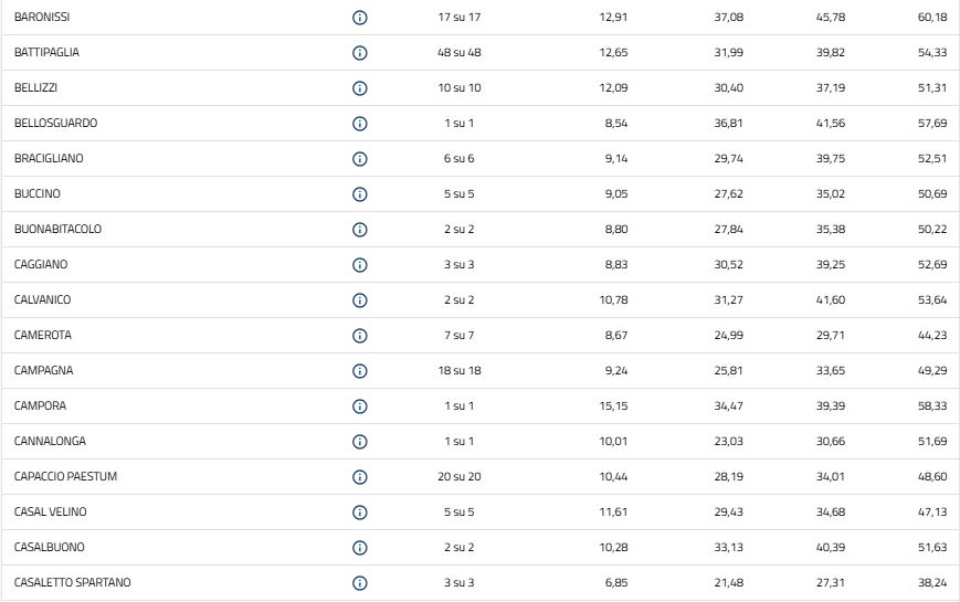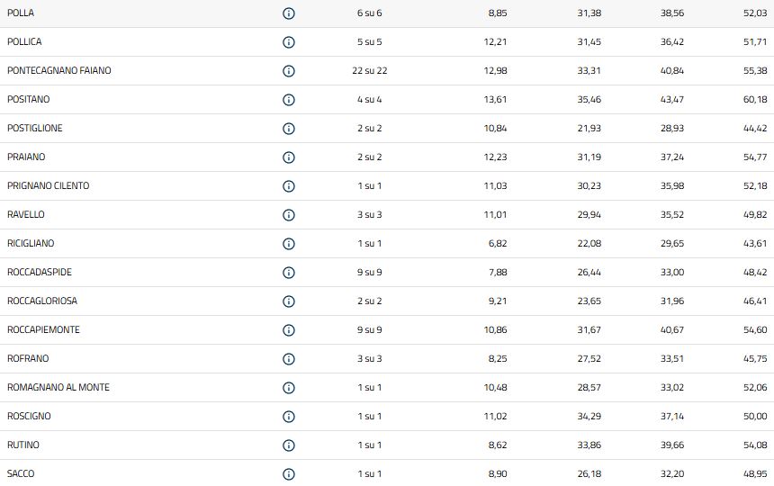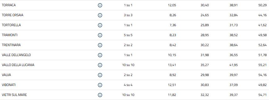 Dati del Vallo di Diano, Alburni e Golfo di Policastro