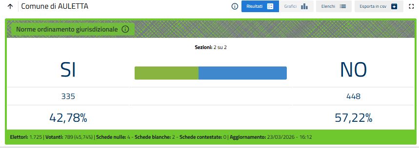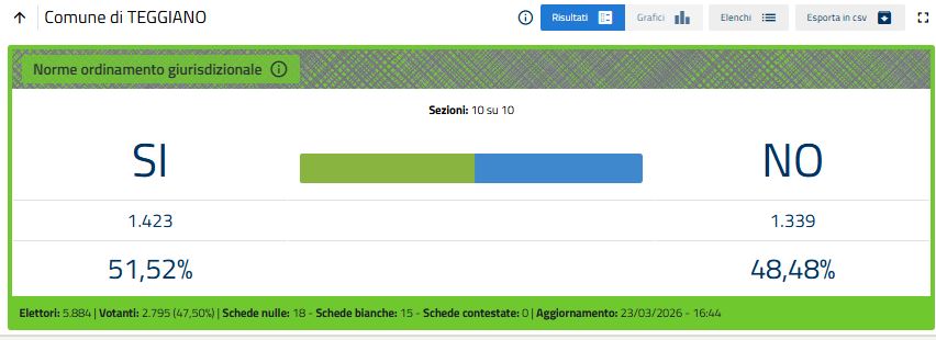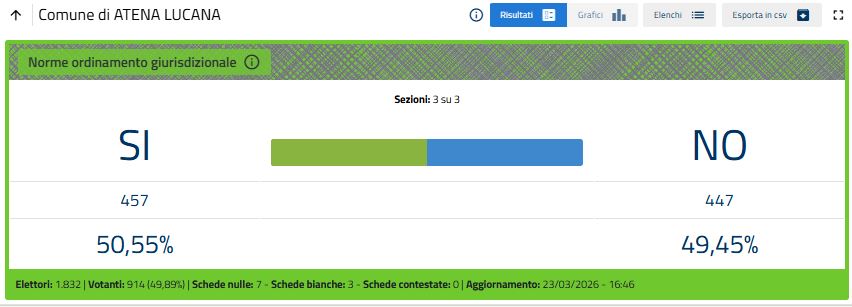 Un dato che segna un incremento rispetto alle ultime elezioni regionali, quando si recò alle urne il 44,10% degli aventi diritto, confermando un rinnovato interesse dell’elettorato per la consultazione referendaria.