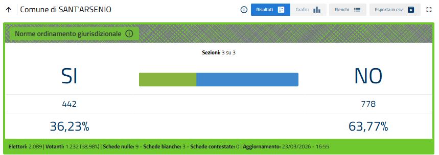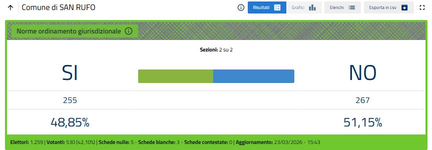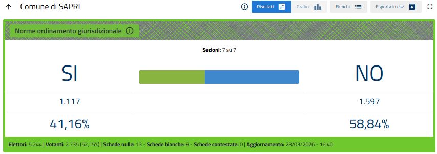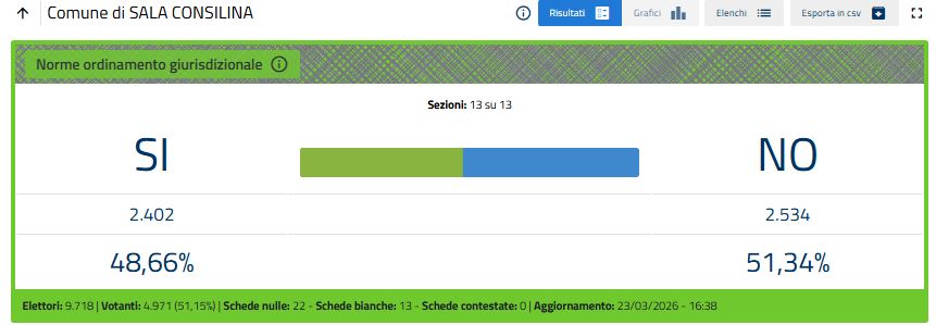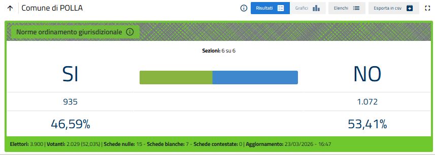 Si attesta poco sopra il 50% l’affluenza definitiva al referendum costituzionale sulla riforma della giustizia in Campania. Secondo i dati aggiornati, la partecipazione ha raggiunto il 50,37%, quando mancano ormai poche sezioni alla chiusura completa del monitoraggio.