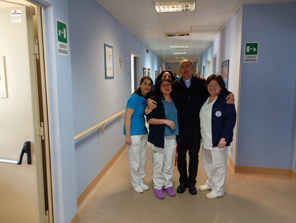 La visita è poi proseguita all’Hospice di Sant’Arsenio, dove il Vescovo è stato accolto dal personale sanitario. Qui ha incontrato i pazienti del reparto, soffermandosi con loro in un momento di ascolto, preghiera e condivisione.