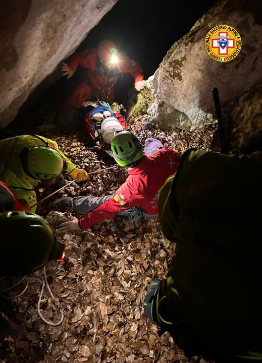 Da quel momento, doppio fronte operativo. All’interno della cavità, i tecnici speleologici hanno avviato le delicate operazioni di recupero. All’esterno, il Soccorso Alpino ha perlustrato l’area alla ricerca del disperso.
