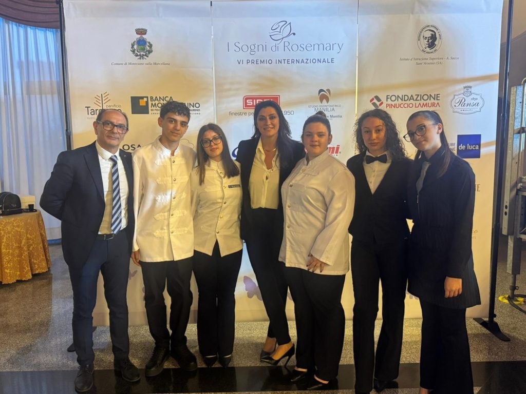 Tra i protagonisti della serata anche gli studenti dell’IPSEOA dell’istituto omnicomprensivo “A.Sacco” di Sant’Arsenio, che hanno preso parte attivamente all’evento affiancando gli organizzatori nell’accoglienza degli ospiti e nel servizio in sala. Accompagnati dal professor Pasquale Masullo, i ragazzi si sono distinti per professionalità, impegno e spirito di collaborazione, contribuendo alla riuscita di una manifestazione di grande prestigio, che ha visto la presenza di importanti esponenti del giornalismo, della televisione e del mondo culturale ed enogastronomico.