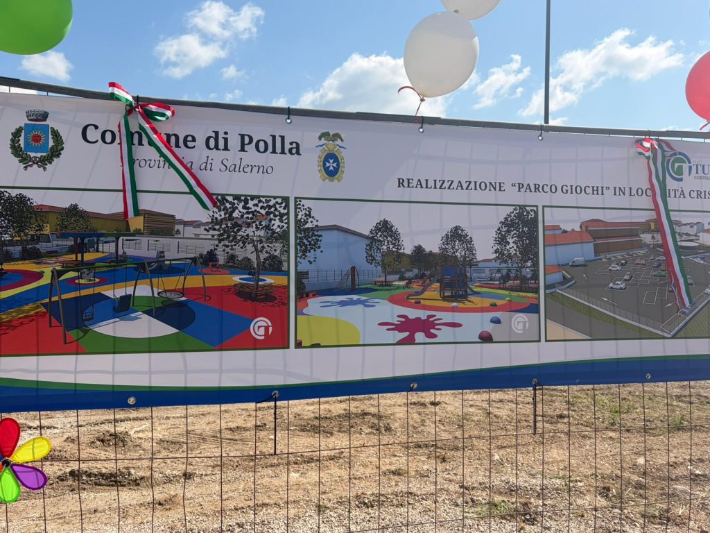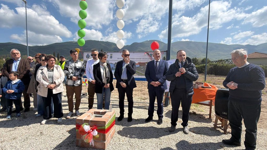 Si è svolta questa mattina a Polla la cerimonia di posa della prima pietra del nuovo parco giochi e del parcheggio che sorgeranno in località Cristo Re, proprio accanto alla chiesa. Un momento partecipato e simbolico che segna l’avvio ufficiale di un intervento atteso dalla comunità.