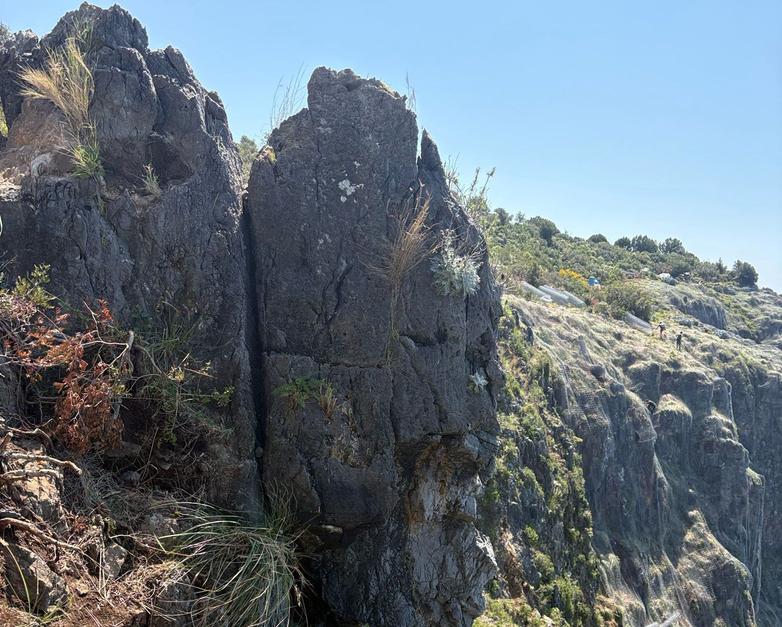 Le attività stanno infatti portando alla luce numerose situazioni analoghe di instabilità lungo tutto il tratto, confermando la pericolosità dell’area. I lavori, autorizzati dagli enti competenti, inclusa la soprintendenza, prevedono il disgaggio controllato dei massi e la messa in sicurezza delle porzioni più esposte della parete rocciosa.