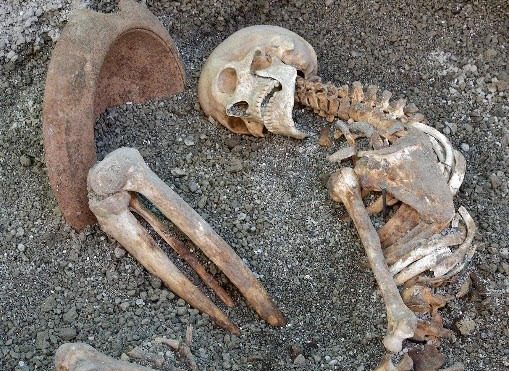 Uno di loro, più giovane, fu probabilmente travolto da una corrente piroclastica, ovvero una nube ardente di cenere e gas tossici, mentre tentava di allontanarsi dalla città. L’altro, più adulto, morì qualche ora prima sotto una fitta pioggia di lapilli, cercando di proteggersi la testa con un mortaio di terracotta ritrovato accanto al corpo, con evidenti segni di frattura. Inoltre, portava con sé una lucerna in ceramica per orientarsi in condizioni di scarsa visibilità, un piccolo anello in ferro al mignolo sinistro e un gruzzolo di dieci monete in bronzo.