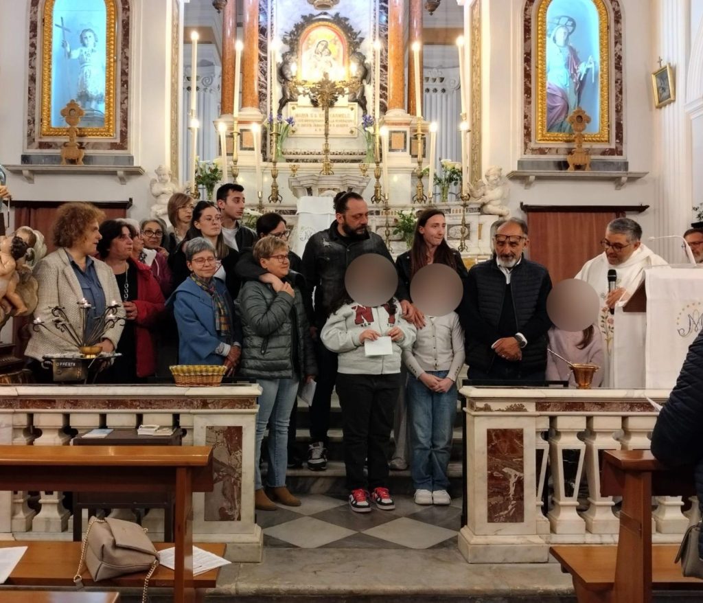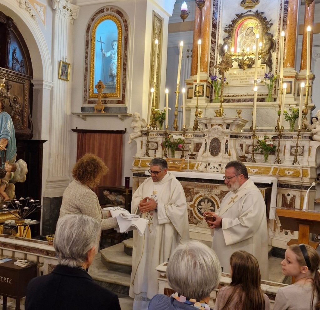 La cerimonia si è svolta in un clima di raccoglimento, accompagnata dalle parole di Don Martino Romano, Parroco di Sant’Arsenio, dalla vicinanza delle famiglie Pecora e Flora, e dalle rappresentanti dell’associazione che promuove l’arte del cucito e che raccoglie decine di iscritte di tutte le età.