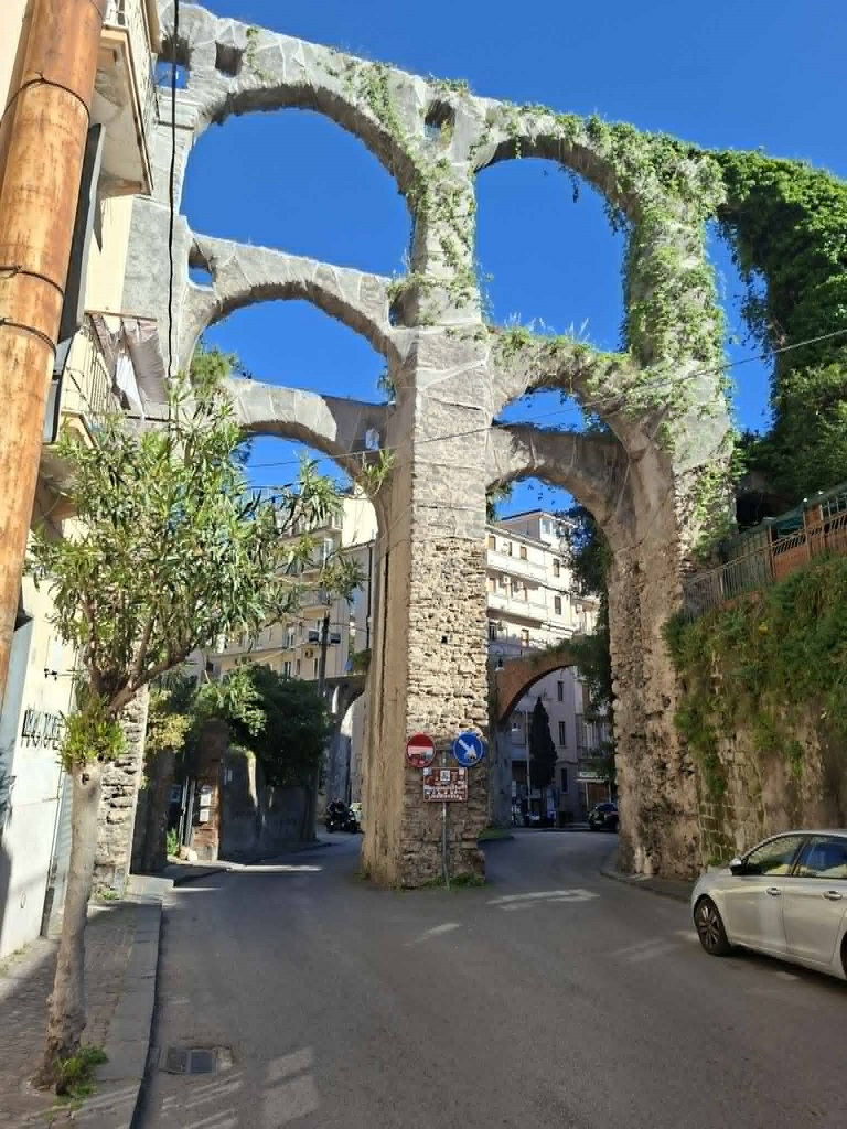 L’antico acquedotto, oggi inglobato nel centro cittadino, rappresenta non solo un’opera architettonica di grande valore — utilizzata in passato per la distribuzione dell’acqua alle strutture monastiche — ma anche un luogo ricco di significato storico e simbolico. Secondo la tradizione, proprio qui si incontrarono i quattro fondatori della Scuola Medica Salernitana.